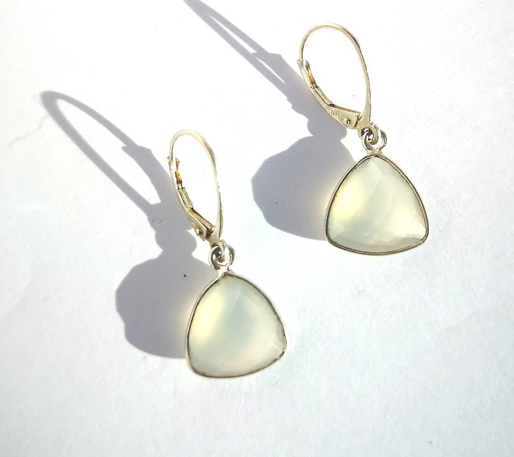 Gemme : Agathe blanche, triangle facetté (Inde) 13 mm par 13 mm.